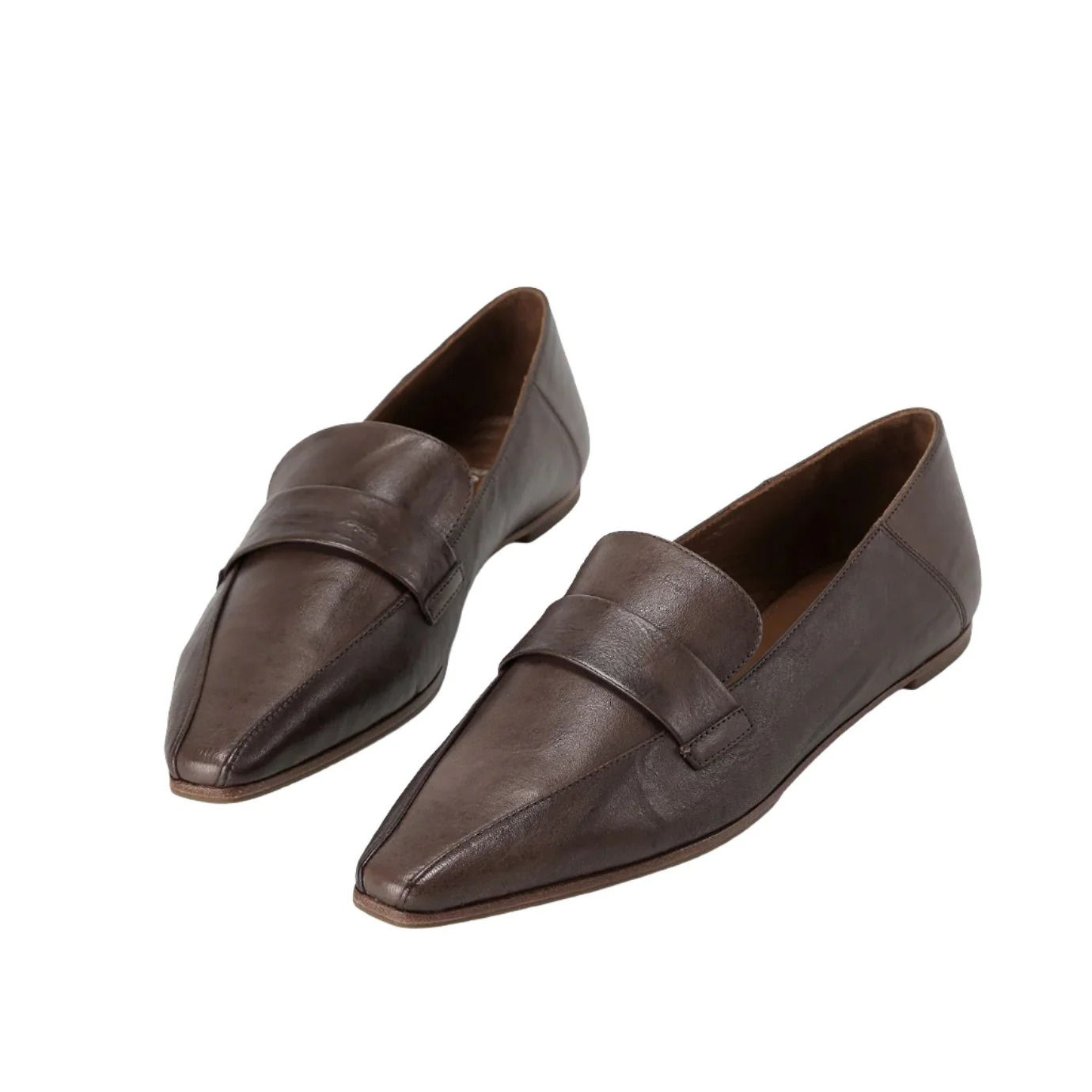 Mini Square Pointed Flat Loafer - Dark Brown