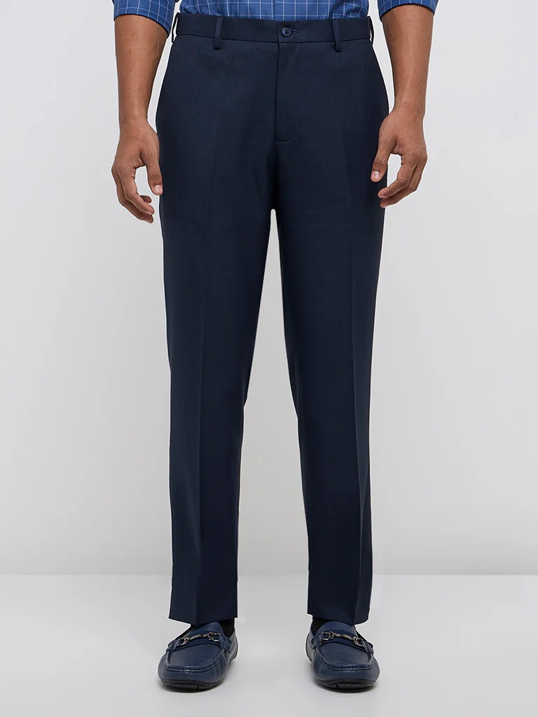 Navy Solid Skinny Mid-Rise Trousers
