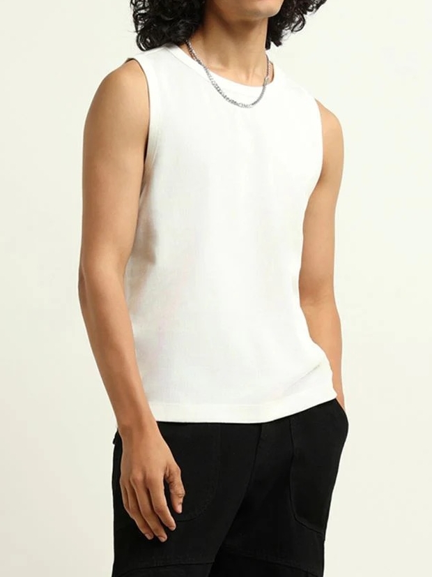 Black Ribbed Slim Fit Cotton-Blend Tank Tops
