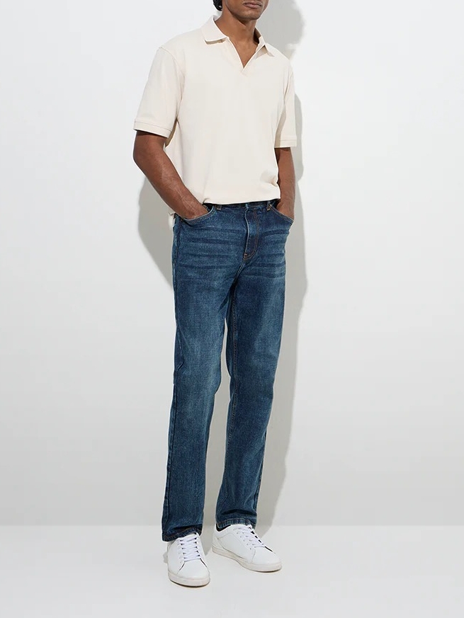 Amplify your casual wardrobe with this beige polo t-shirt Casuals. Tailored in a relaxed silhouette from a cotton-blend fabric, it features a sleek polo neck collar and half sleeves.