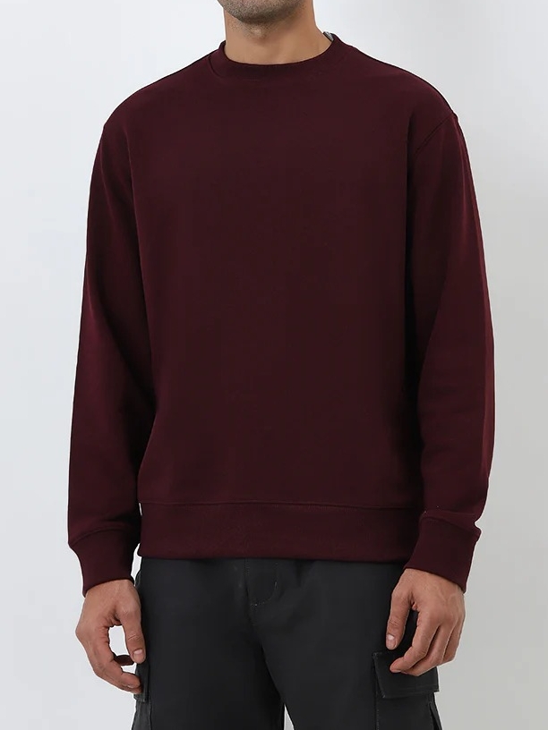 This sweatshirt features a solid design in a relaxed-fit. Fashioned from a cotton-rich fabric ensuring maximum comfiness, this cool pullover is complete with a ribbed round-neck and long-sleeves.