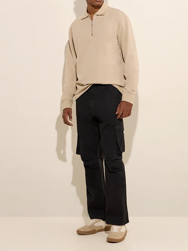 This beige sweatshirt is designed in a relaxed profile. Milled from a cotton-blend fabric, it includes a spread collar that extends to a zipper placket and full sleeves.
