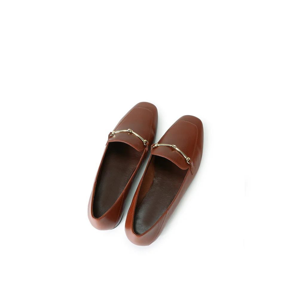 Metal Buckle Detail Leather Loafers - Brown