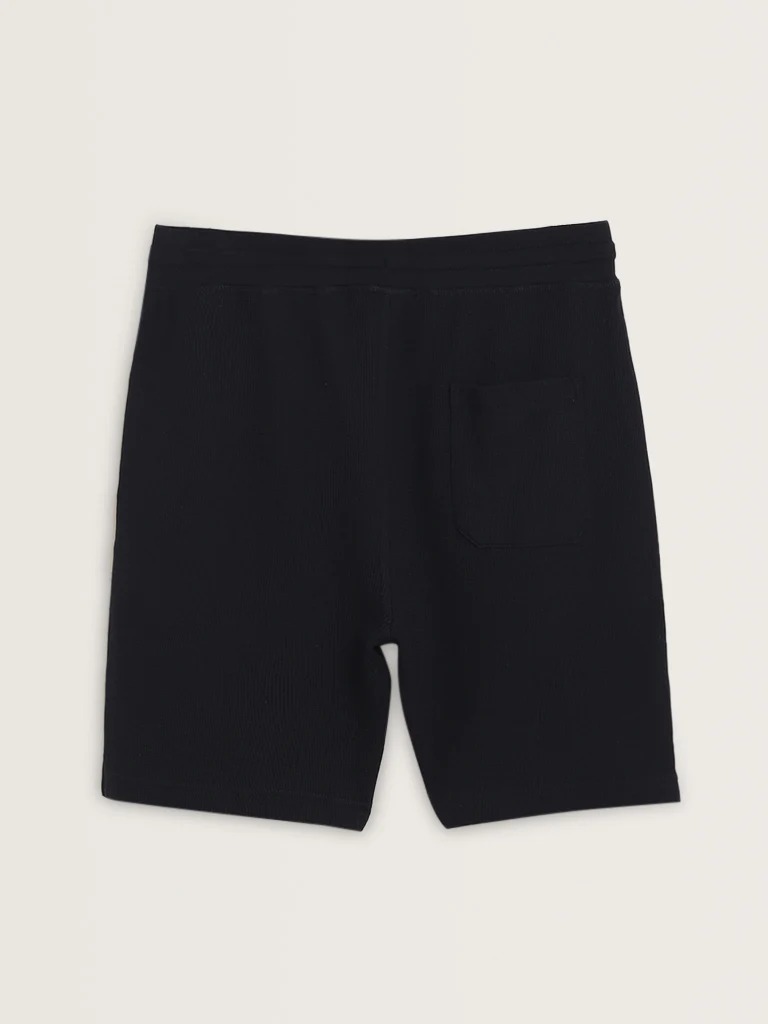 Casual dressing got a lot more comfortable owing to these navy shorts. Flaunting a self-textured profile, the dual-pocket style features a cotton-blend composition coupled with a relaxed frame for a breathable handle, while the drawstring waist offers a secure fit.
