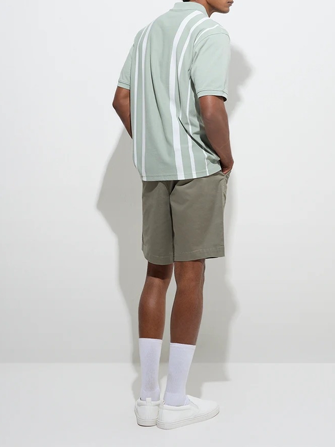These olive shorts are crafted from a rich cotton-blend for a comfortable feel. Designed with a relaxed silhouette, they feature a buttoned waistband, a zipper fly, belt loops, and multiple pockets for a blend of style and functionality.