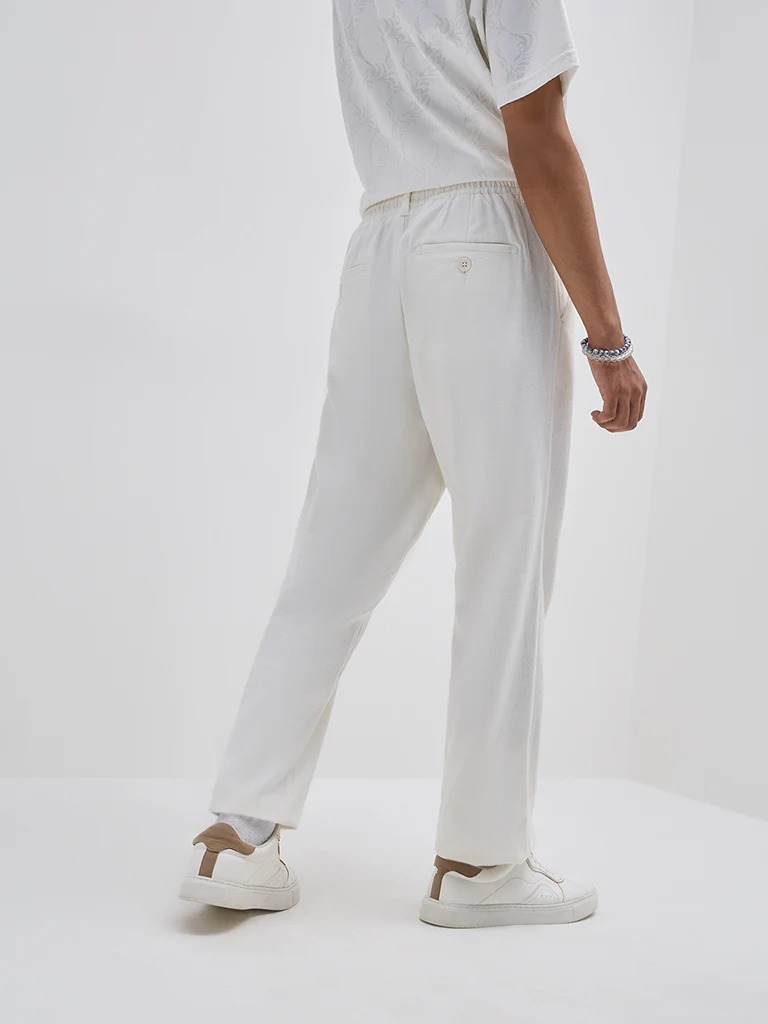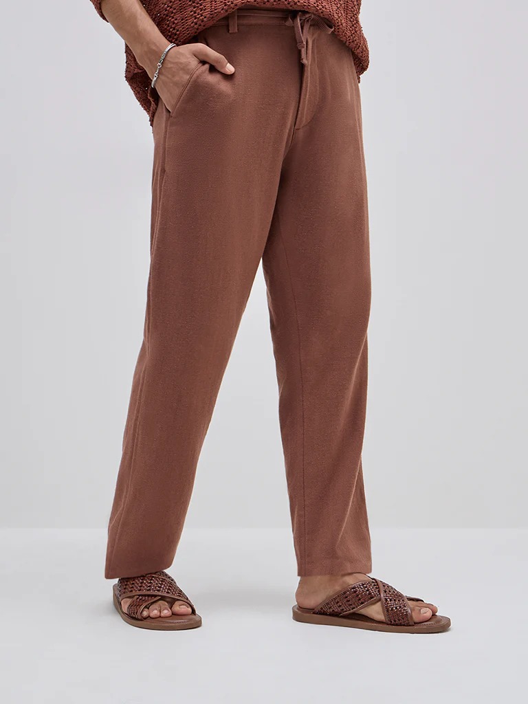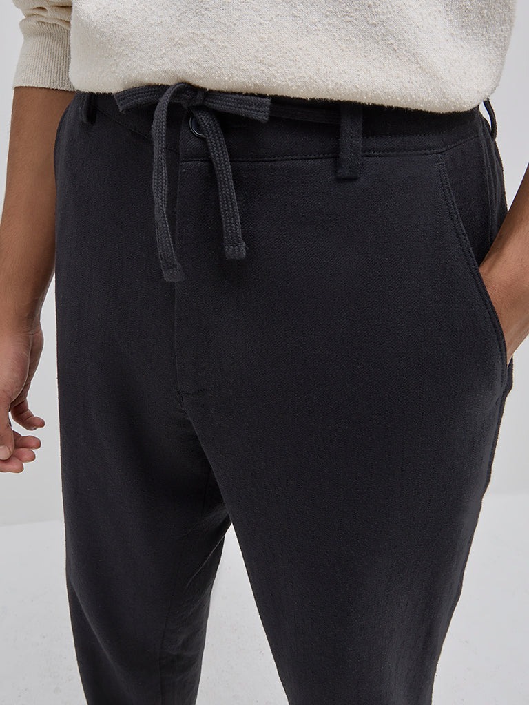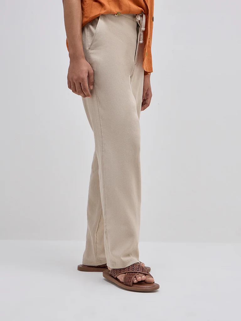These chinos are presented in a relaxed silhouette. Made from a cotton-linen blend, the mid-rise pair comforts with its elasticated drawstring waist, zipper closure, belt loops, and side pockets.